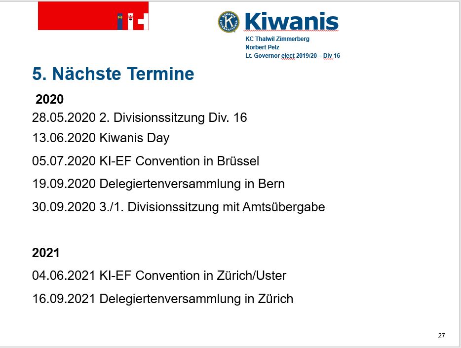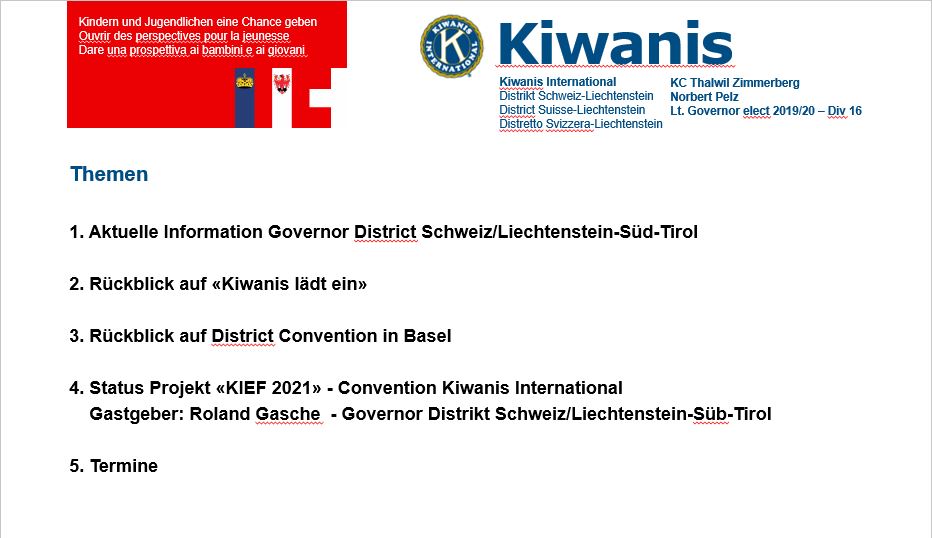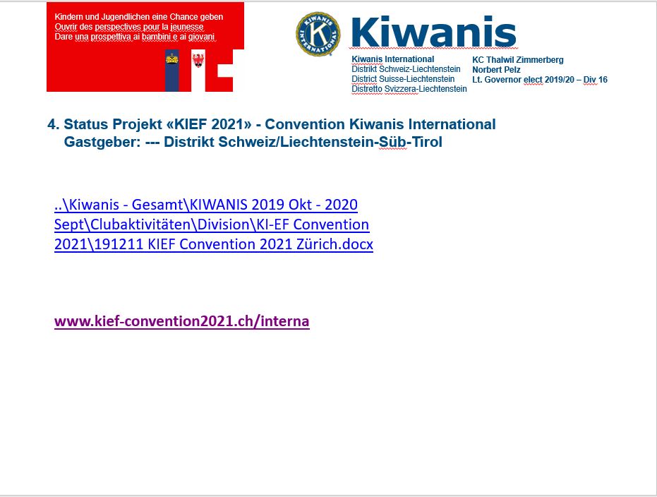 Im folgenden einige Folien aus der Präsentation. Die vollständige Präsentation ist in MyKiwanis abgelegt. |