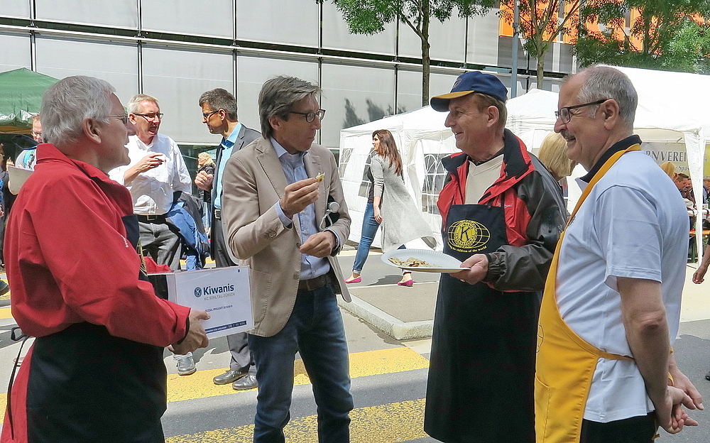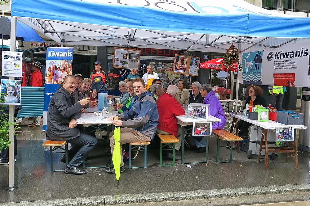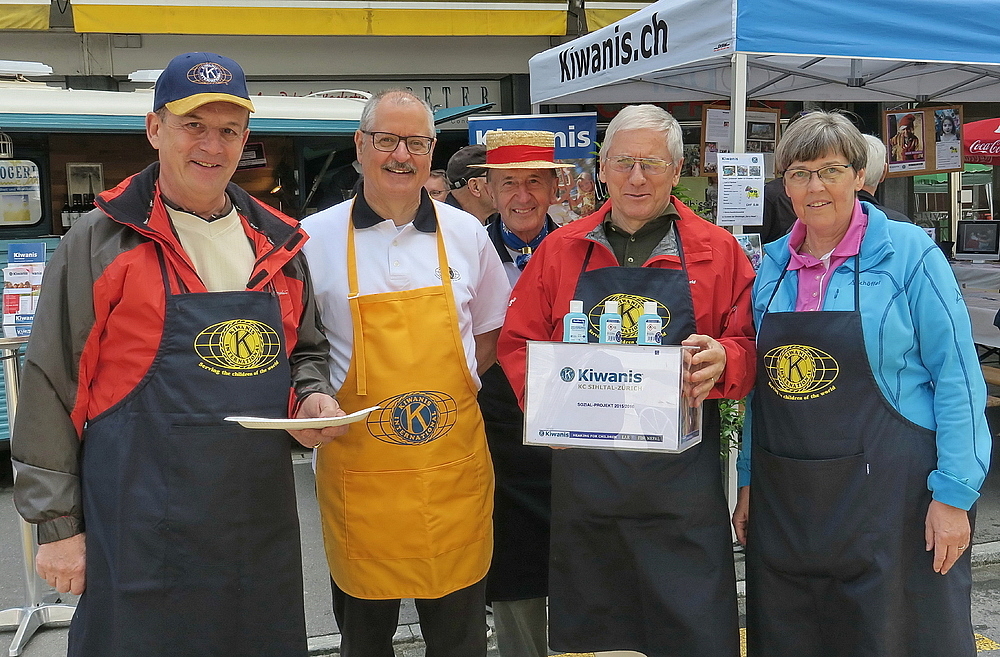 Als Vertreter unseres Klubs Thalwil-Zimmerberg unterstützen wir unsere Kiwanisfreunde vom KC Sihltal-Zürich beim Auftritt auf dem Adliswiler Sommermarkt.